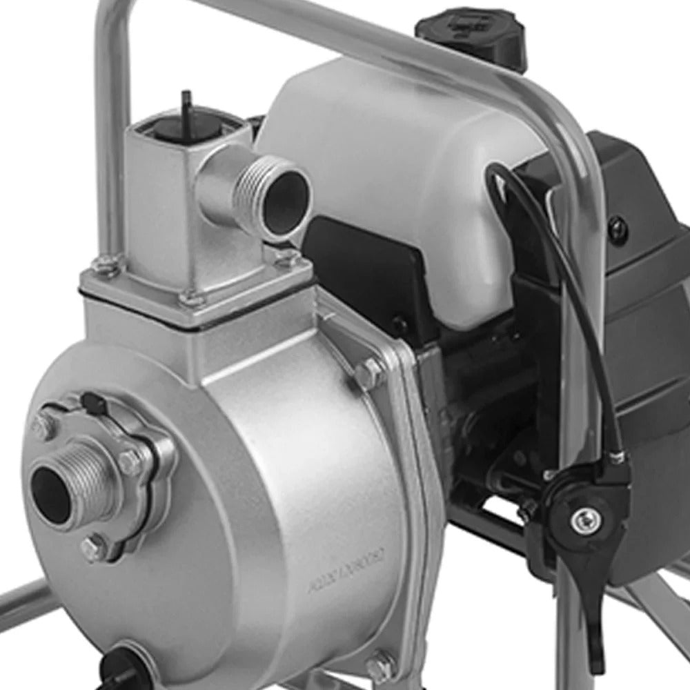 Com motor 2 tempos, a motobomba autoescorvante B2T-701 se destaca por sua leveza e facilidade no transporte. Ela transporta até 9 mil litros de água por hora e possui uma altura máxima manométrica de 23 MCA.